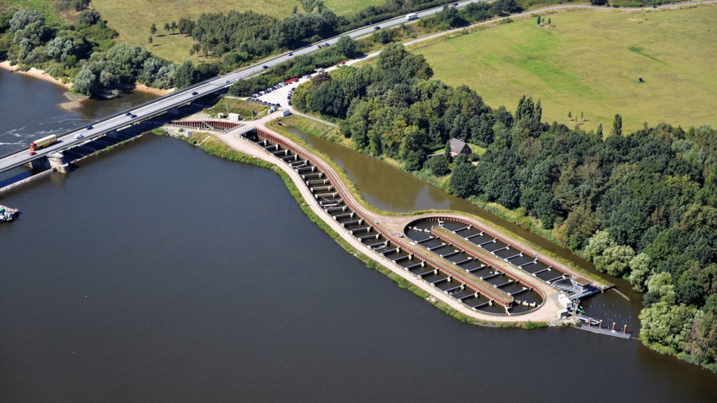 Njemačke riblje ljestve slave milijuntog korisnika je naslov članka (https://www.dw.com/en/german-fish-ladder-celebrates-millionth-user/a-16509927), a ukratko se radi o najdužem europskom ribljem prolazu pokraj Geesthacht-a u sjevernoj Njemačkoj dovršenom 2010.g. Dugačak je 550 i širok 16 metara. Izgradila ga je kompanija Vattenfall za 20 milijuna €, kao znak dobre volje jer su nešto dalje izgradili termoelektranu na ugljen.
