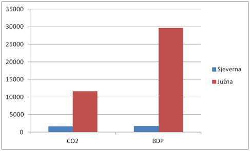 Ako želite veći standard svojih građana morate ispuštati više CO2. Tako je Južna Koreja 46. na svijetu po standardu, a Sjeverna 214. od 228 zemalja. Samo za usporedbu, Hrvatska je 81.
