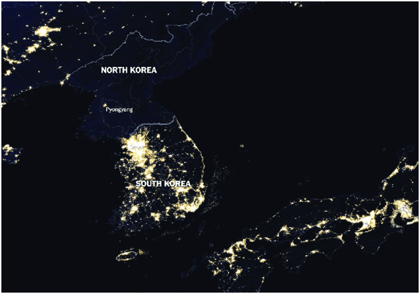 U prošlom postu (Spasimo klimu) sam prikazao grafikon u kojem se vidi kako životni standard ovisi o emisiji CO2, drugim riječima što više CO2 se ispušta to je standard stanovnika viši. Pogledajmo azijske susjede: Sjevernu i Južnu Koreju. Obje zemlje nemaju ni kapi vlastite nafte ili litre prirodnog plina, ali također obje imaju prilično ugljena. Južna je poznata po izvozu automobila, brodova, računala i mobitela. Sjeverna skoro po ničemu, ali ipak nešto izvozi – tekstil. Da vidimo njihov standard i emisiju CO2.