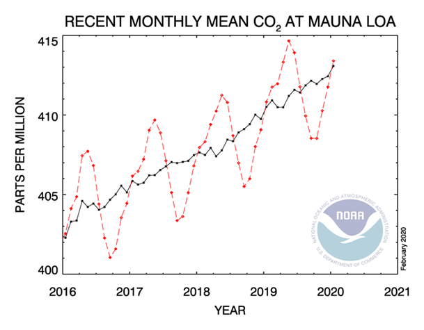 Jeste li se ikad zapitali kako to da pri mjerenju atmosferskog CO2 krivulja sezonski krivuda? U osnovi, na jesen počinje rasti i tako do kraja proljeća kad počinje padati. Odgovor leži u rasporedu kopna i mora na Zemlji. Približno 70% kopna se nalazi na sjevernoj polutci i tu biljke igraju presudnu ulogu. Od proljeća do jeseni dobijaju lišće i rastu, za svoj razvoj troše i pohranjuju CO2. Na jesen počinju mirovati, gube lišće koje trune i ispušta CO2 u zrak. Svako neposječeno stablo zadržava svoj CO2 u stablu, granama i korijenju. Za razliku od toga, korijen posječenog stabla trune i opet vraća u zrak CO2 koji je za života skupio.