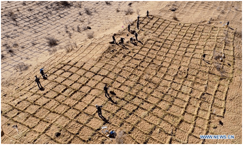 Problem s pustinjom je što pješčane dune stalno mijenjaju oblik. Kinezi su zato još prije sedamdeset godina počeli fiksirati pijesak slamnatim pregradama dimenzija metar puta metar. Jednom učvršćena podloga koristi se za sađenje biljaka. Navodnjava se sistemom kap po kap. I to je to.
