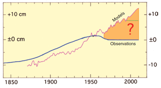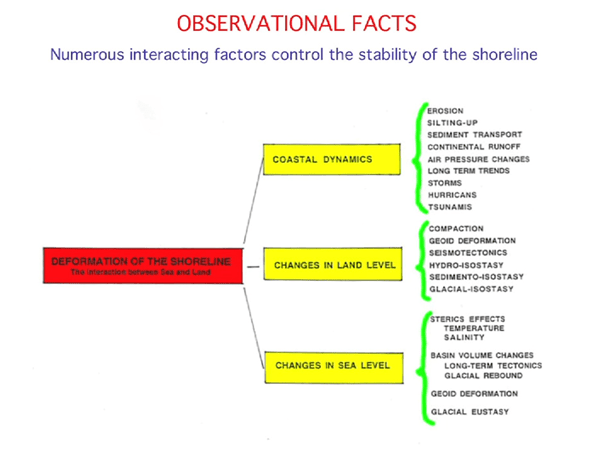 Nils Axel Mörner je u tom jednom 40-minutnom predavanju iznio niz svojih rezultata istraživanja i promatranja, koja su uglavnom ukazivala na činjenicu da se razina mora malo ili nikako podiže, kao što se vidi na sljedećoj slici. Slično kao u slučaju „globalnog zagrijavanja“; modeli jedno – stvarnost drugo.