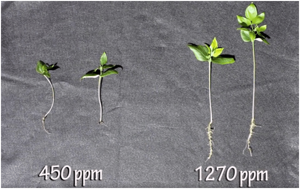 Biljke su rasle kao danas u plastenicima i svi su uživali u obilju života. Samo da objasnim, ako hoćete da vam biljke dobro i brzo rastu, dodajete CO2 u plastenike.