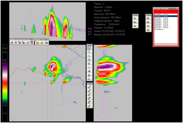 Vertikalni presjek tučonosnog oblaka zabilježenog radarom na Fruškoj Gori u 16h26min