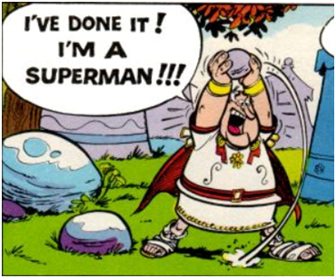Na kraju, kad se sve pogleda, izgleda da ovo i nije tako velika pobjeda Znanosti. Više me podsjeća na epizodu iz Asterixa kad je zarobljeni druid napravio lažni magični eliksir snage Rimljanima, a rimski zapovjednik nakon niza neuspjelih pokušaja da digne nešto teško završio s kamenom na slici.