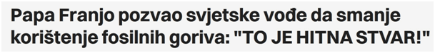 Tako izvještavaju novine. Priznajem da mi nije jasan njegov stav. Znamo da u ugljenu, nafti i plinu ne živi nijedno Božje biće. Znamo da im ovi obnovljivi izvori smanjuju staništa (sječom šuma i postavljanjem kilometara panela). Znamo da ih vjetroturbine doslovno ubijaju (ptice i šišmiše). Znamo da je uvijek bilo bolje za sve kad je bilo toplije (ovdje). I on svejedno tako. Nije mi jasno kako on misli da će “dekarbonizacija” doprinijeti razvoju života, ako znamo da je ugljik osnova života. I kako to onda Papa brani Božje djelo u kojem biljke održavaju živote svih ostalih magičnim pretvaranjem sunčeve svjetlosti, uz pomoć vode i ugljikovog dioksida u energiju potrebnu za naš život? Što će živog ostati u svijetu premreženom milijunima metalnih čudovišta i pokrivenih desecima milijuna mračnih ploča? Naravno, Papa ne mora znati koliko malo energije daju obnovljivi izvori, ali barem bi on morao shvatiti i braniti postojanje Božjeg nauma. Ovako se utopio u sivu masu raznih političara i kvaziznastvenika koji na svaki pomen Boga kažu: Izostavi Boga iz rasprave, ovdje se radi o Znanosti. Baš me zanima što bi na to rekli Tesla, Lemaitre, Newton, Kepler, Planck, Schrödinger, Heisenberg, Carnot, Maxwell i mnogi drugi, za koje je Bog bio legitimna inspiracija.