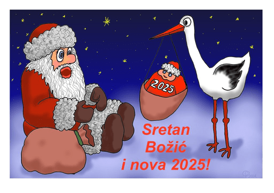 Na kraju, Oleg karikaturom i ja vam svima želimo sve najbolje, svakome ono što slavi, a ako baš ništa ne slavi, onda onako, bez povoda.