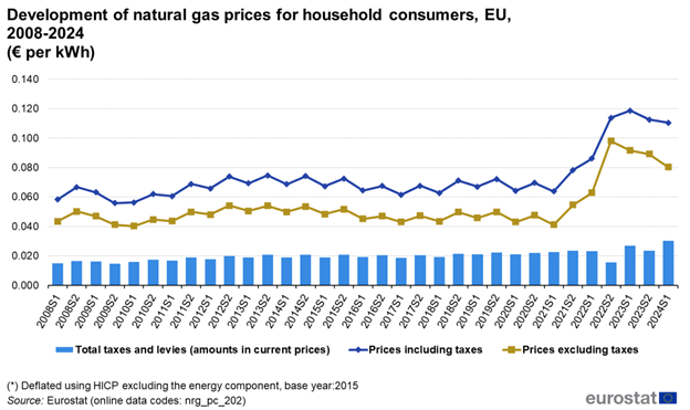 Priznajem da ne razumijem povezanost rezultata izbora s bilo čijom kampanjom. Ili ono što pričaš privlači ljude ili ne. Slično tome se njemačko-briselska politička birokracija buni što je Musk razgovarao sa šeficom AfD-a, Alice Weidel. Rezultati izbora ne ovise o uloženim sredstvima, kao što smo vidjeli kod nas. Vratimo se Rumunjima. Jasno i glasno, političke elite su značajno podcijenile osjećaje i želje svojih sugrađana, s kojima očigledno dijele samo državljanstvo, a ne i svakodnevne probleme i brige. Novi izbori zakazani su tek za početak svibnja. U međuvremenu EU-Nato igrači moraju smisliti kako izbaciti nepoželjnog kandidata iz igre. Što je to zgriješio Georgescu? Ništa. Ukratko, njegov osnovni moto je „Rumunjska prvo“, slično Orbanu, Ficu, Milanoviću, AfD-u i drugima. Kaže kako bi sve kompanije trebale imati barem 50% dionica u rumunjskom vlasništvu, a poljoprivreda treba omogućiti samodostatnost. Upozorava da gradnja najveće NATO vojne baze nadohvat Crnog mora i Rusije može biti priprema kolektivnog zapada za novi svjetski rat, pri čemu će Rumunjska biti sljedeća žrtvovana zemlja na oltaru zapadnog carstva (nakon Ukrajine). Sve kako bi se isprovociralo nezadovoljstvo u Rusiji, postavilo nekog Jeljcina 2.0 i nastavila prekinuta pljačka najveće i mnogim rudama bogate ogromne zemlje. Ovih dana često se, na kraju rukometnog time-outa čuje: „Iznad svih, Hrvatska“. Nema tu ništa loše, na kraju tako počinje i njemačka himna. Briselski birokrati na svaki način nastoje promijeniti takva gesla u „EU iznad svega“. Gangrenozna EU će sve jače pritiskati svoje nevoljne članice da idu u smjeru u kojem želi Europska komisija, koja sluša glas svog prekooceanskog gospodara. Pogledajmo kako to izgleda na primjeru cijena plina za kućanstva.