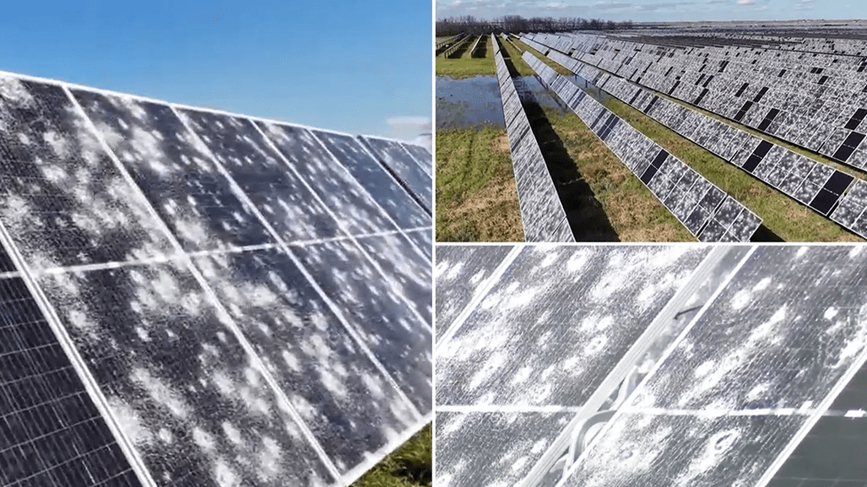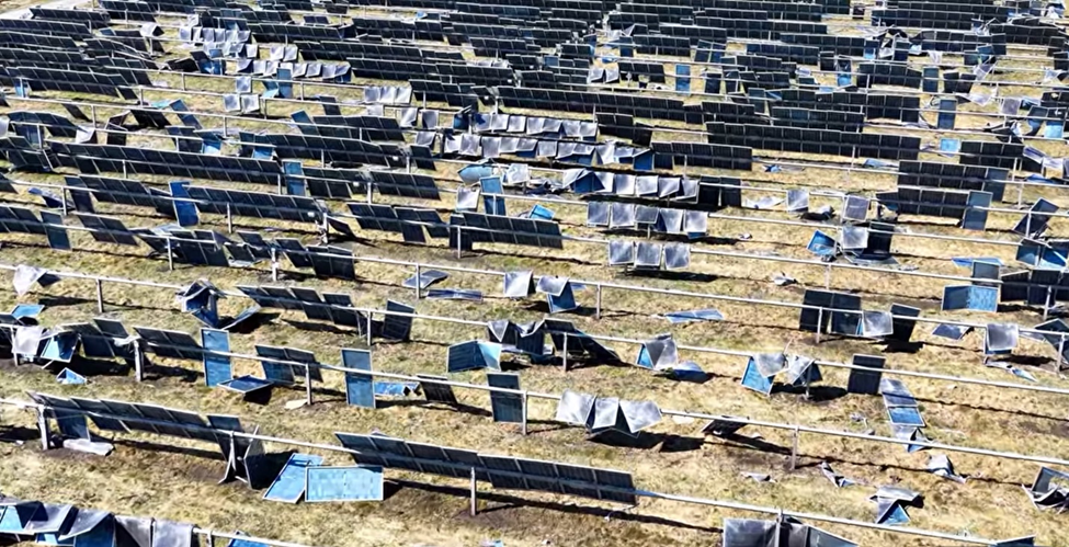 Štetu može napraviti i tuča, kao što se vidi na slikama solarne farme u Texasu.